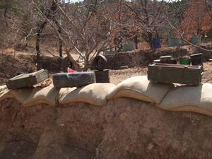 (8)进攻构筑物 一个构筑物即一所房子或其它的沙包、汽油桶等。开战后一般构筑物大都被参赛人员利用。这是因为构筑物本身几乎不能被彩弹穿透,是最好的隐蔽所。对构筑物的进攻,最有效的方法是由几个战士配合行动。构筑物必然有洞孔被敌人利用。一般情况下是敌人从这些洞孔里发射火力,但当被我方火力压住时,他们会退缩到角落里躲避。在向构筑物进攻时,两个战士采取行动。一个人从较高水平射击,另一个从较低水平射击。高的射击者以立姿侧身猛击敌方,低的射击者迅速冲进构筑物。每个队员都应知道他们攻击的角度,以便在掩护中不致于引起互相重复和误伤。